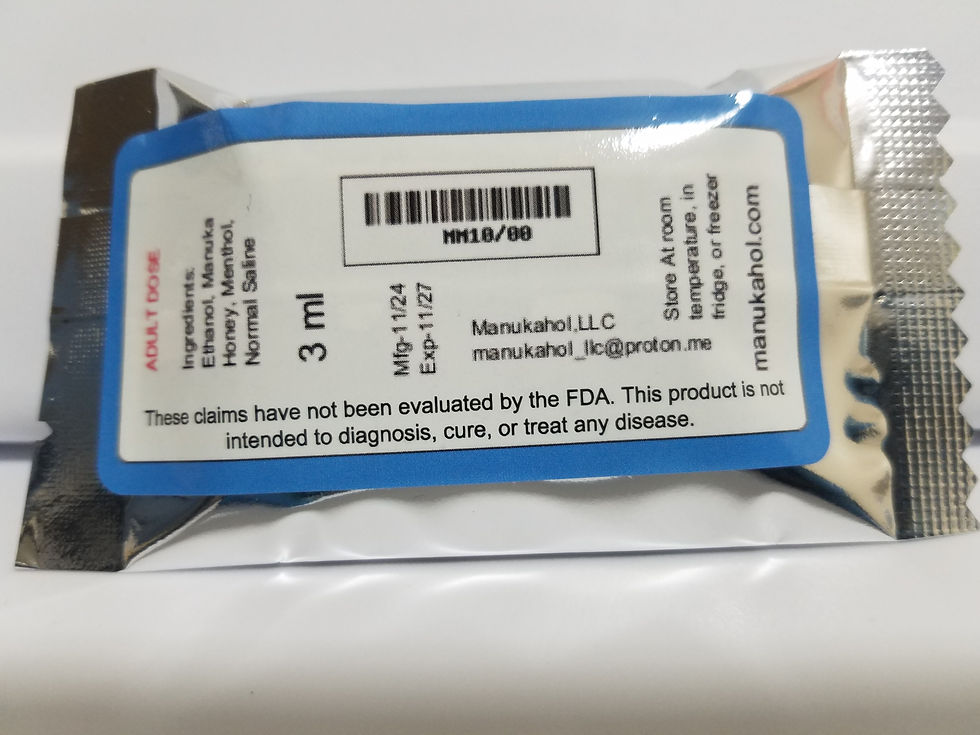 Manukahol Mentholated (Single Adult Dose) with tamper evident seal.